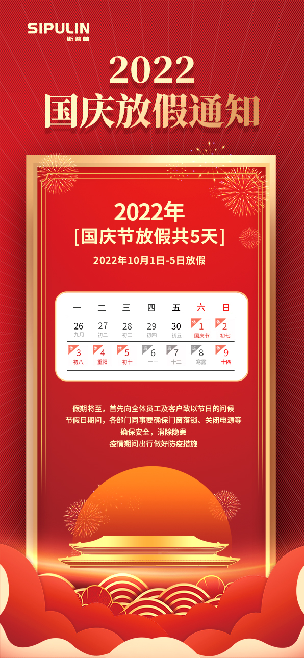 斯普林(佛山)环境净化科技有限公司2022年国庆节放假安排如下: